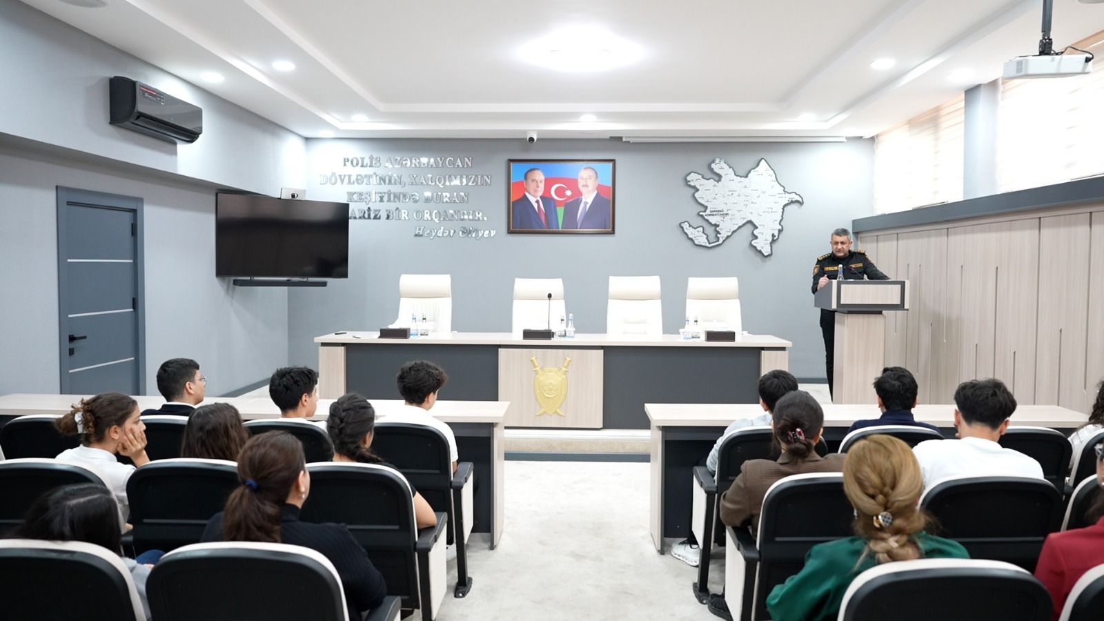 Polis polkovniki Vüqar Ağayev şagirdlərlə görüşüb, onlara Polis Akademiyasının üstünlüklərindən danışıb