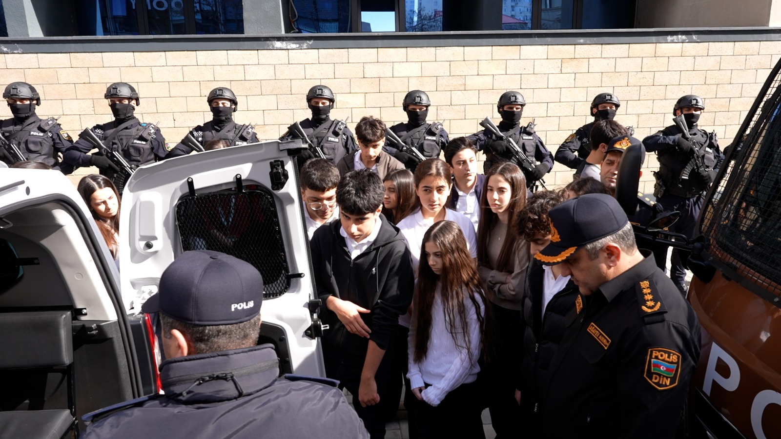 “Təhlükəsiz Şəhər” və xüsusi təyinatlıların təlimi Tədbirin ən maraqlı hissəsi şagirdlərin Nəsimi RPİ-nin daxili bölmələri ilə tanışlığı olub. Məktəblilər idarənin Növbətçi Hissəsi, Müvəqqəti Saxlanma Yeri və “Təhlükəsiz Şəhər” monitorinq otağında iş prosesini canlı izləyiblər.