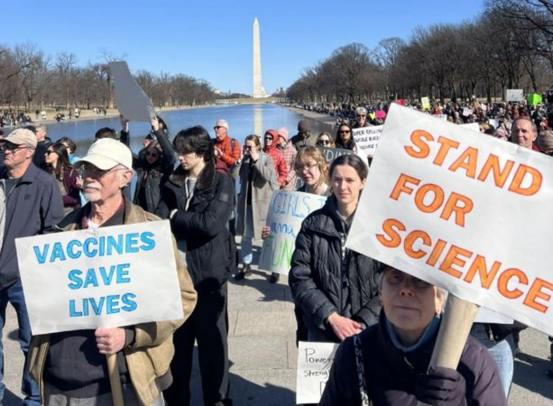 Vaşinqtonda keçirilən mitinqin iştirakçıları ABŞ Prezidenti Donald Trampın elm sahəsinə ayrılan vəsaitin azaldılması üzrə siyasətinin əleyhinə çıxış edirlər.